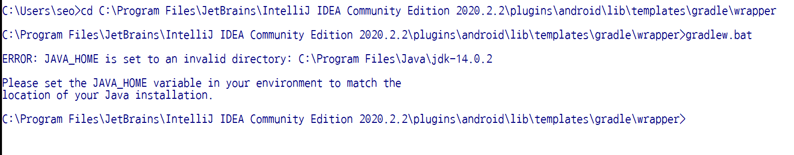 본인이 프로젝트 압축을 푼 폴더로 이동하셔야 합니다^^!