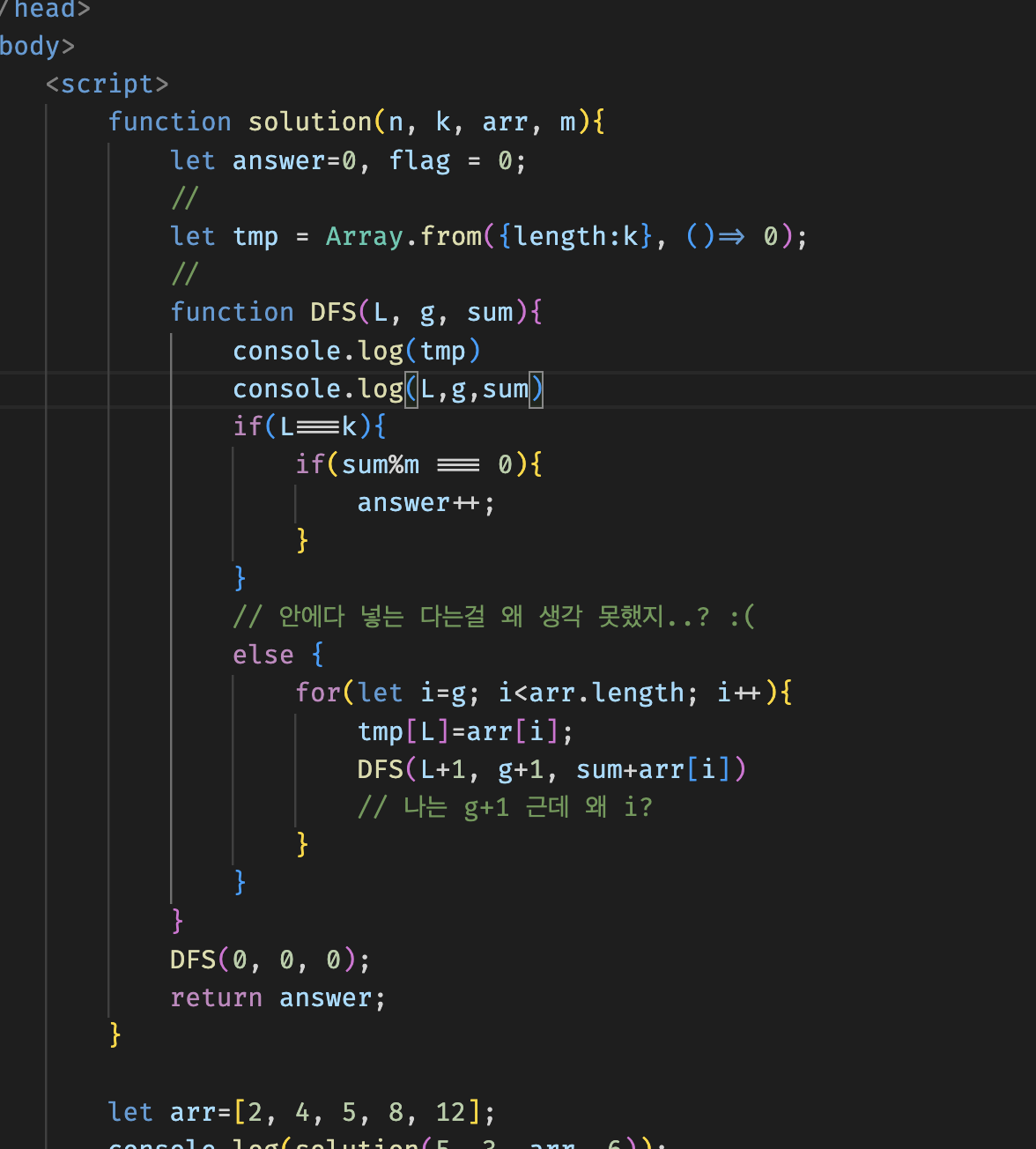 DFS의 else안에 for 루프에서 DFS의 매개변수를 g+1 로 하면 안되는 이유가 뭔가요? 답안에 있는 i+1과 같이 루프 시작점인 i의 값을 제한해주는 건 똑같아 보이는데요?