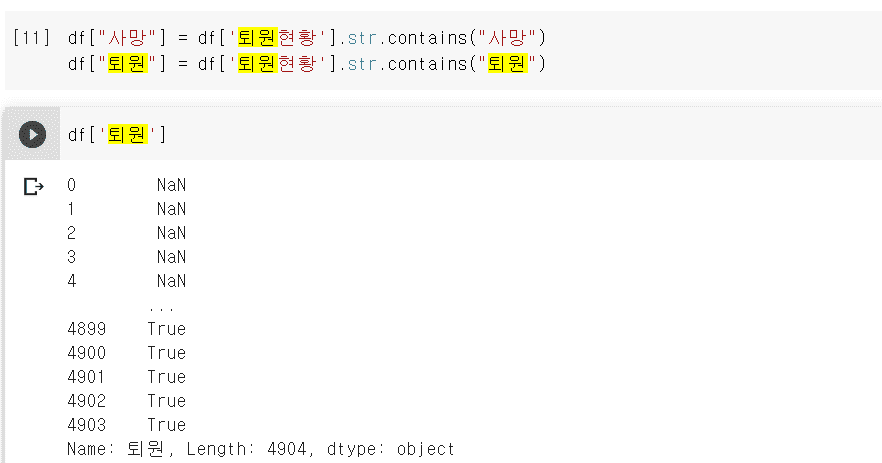 그래서 True, False 로 나오면 해당 내용이 있다/없다로 구분해 볼 수 있으며