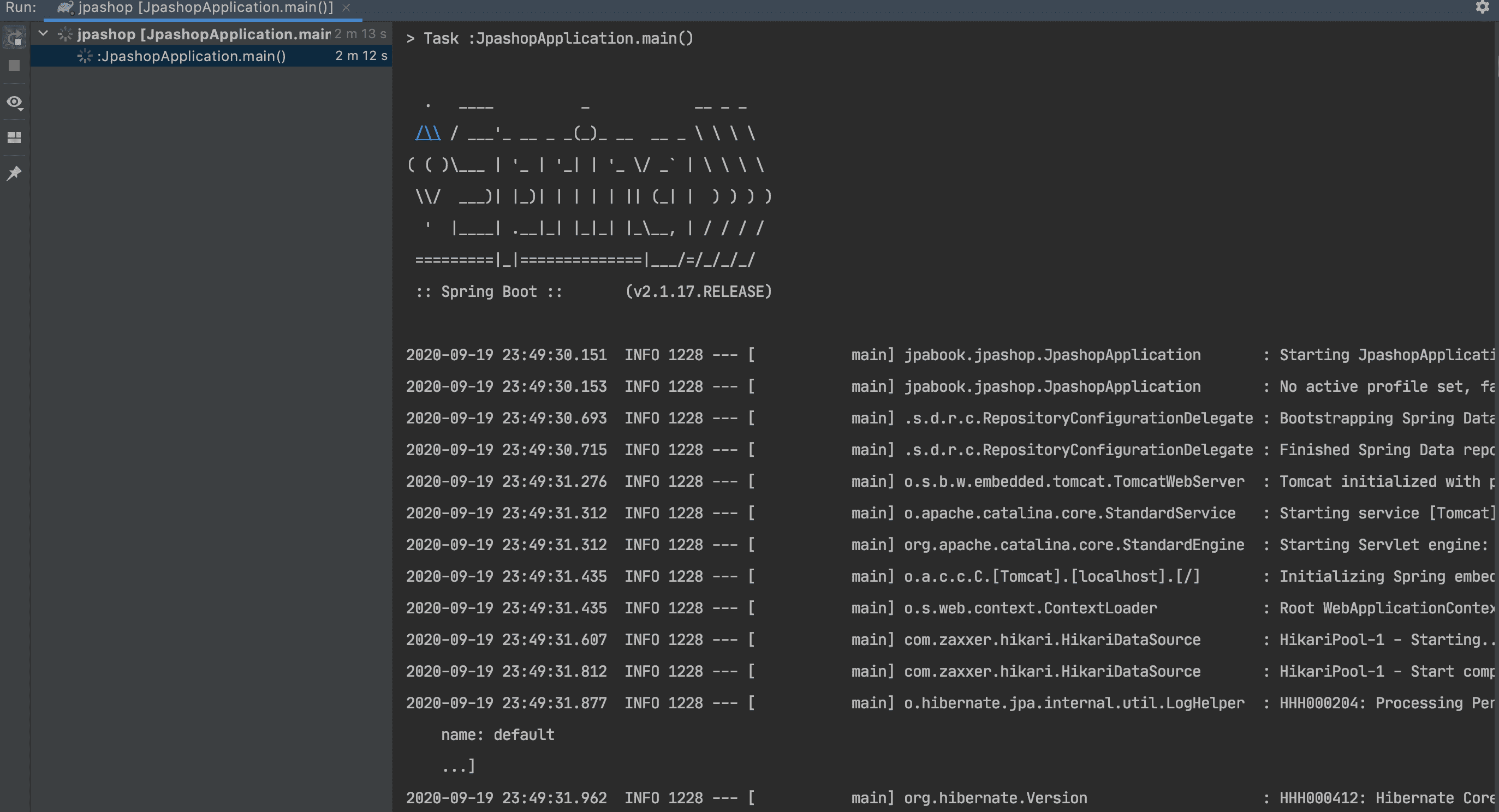 지금 보니까 gradle로 실행이 되고 있습니다.