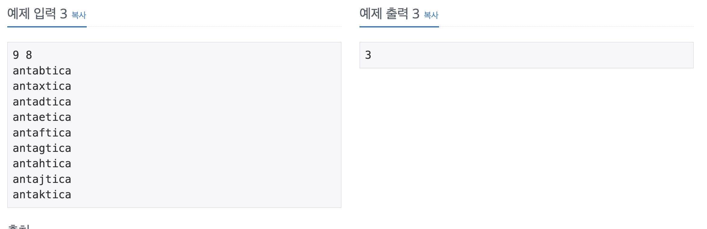 위 예제 입력을 보고서 저는 "anta", "tica"의 낱말까지도 배운 후 카운트 해야한다고 생각했거든요