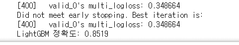 GBM < XGBoost < LightGBM < 결정트리(단일) < 랜덤포레스트