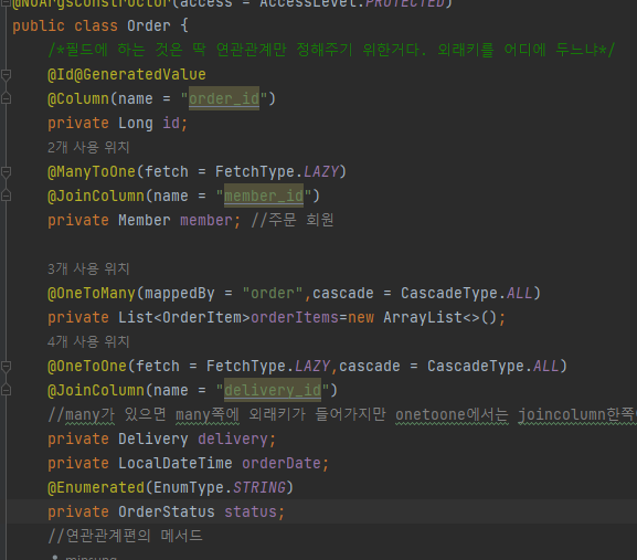 저희가 배운 order클래스안에 필드는 저렇습니다.