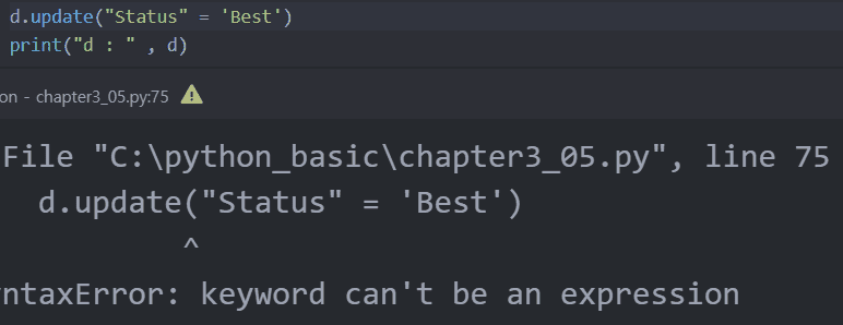 딕셔너리 d에 있는 Status인 키 값을 Best로 바꾸기 위해