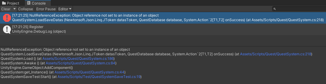 퀘스트 시스템 관련 NullReferenceException 오류에 대해 질문드립니다.