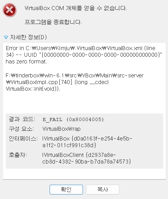 VirtualBox는 PC의 사양과 설정의 변화등에 매우 민감하게 작동 합니다.