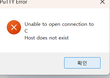 "아까 미완성으로 한 번 열렸을때 putty로 잘못 들어가서 계속 이렇게 받아지는데 어떻게 하나요, 다시 연결프로그램을 버츄얼박스로 지정하면 이렇게 나옵니다"
