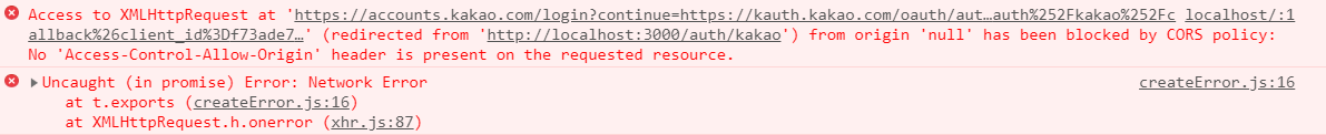 카카오 로그인은 ajax 요청을 하는게 아니라 a태그나 location.href로 요청하셔야 합니다.