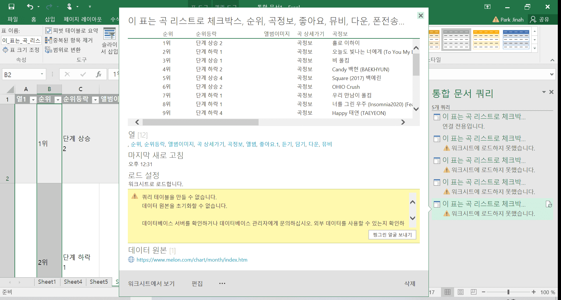 웹상에서 데이터불러오기 오류