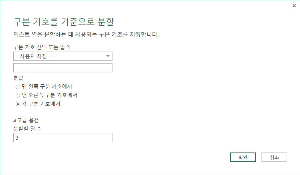 구분기호 기준 열분할시, 사용자지정의 추가옵션박스 여부