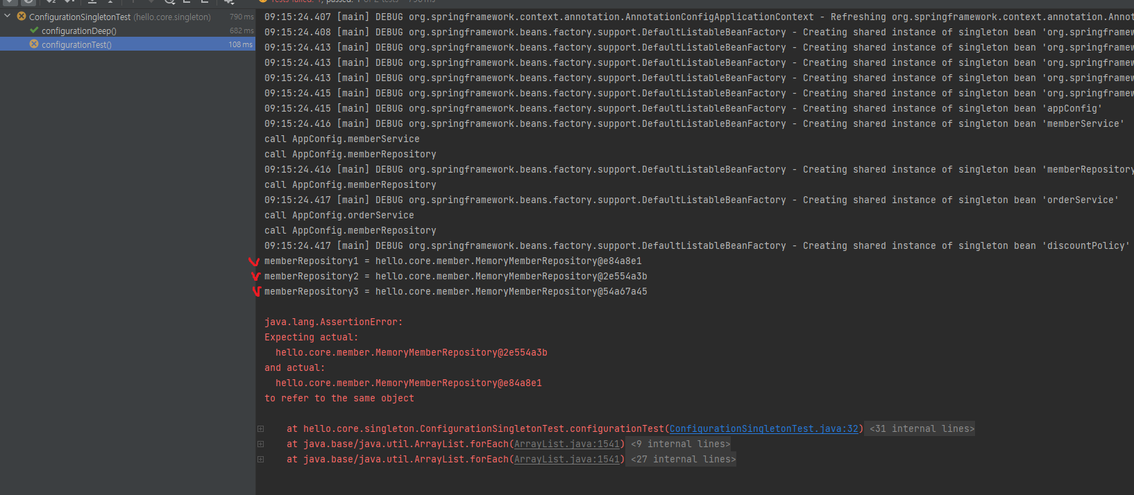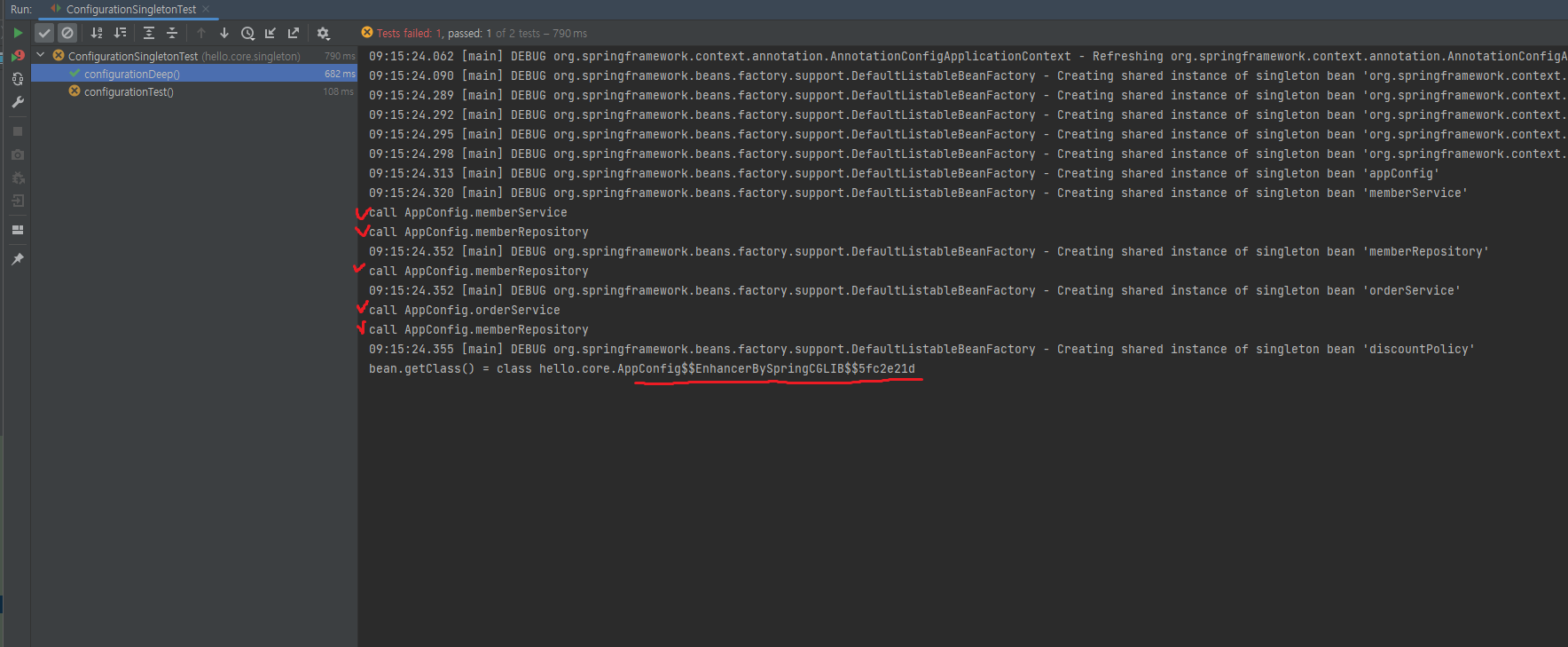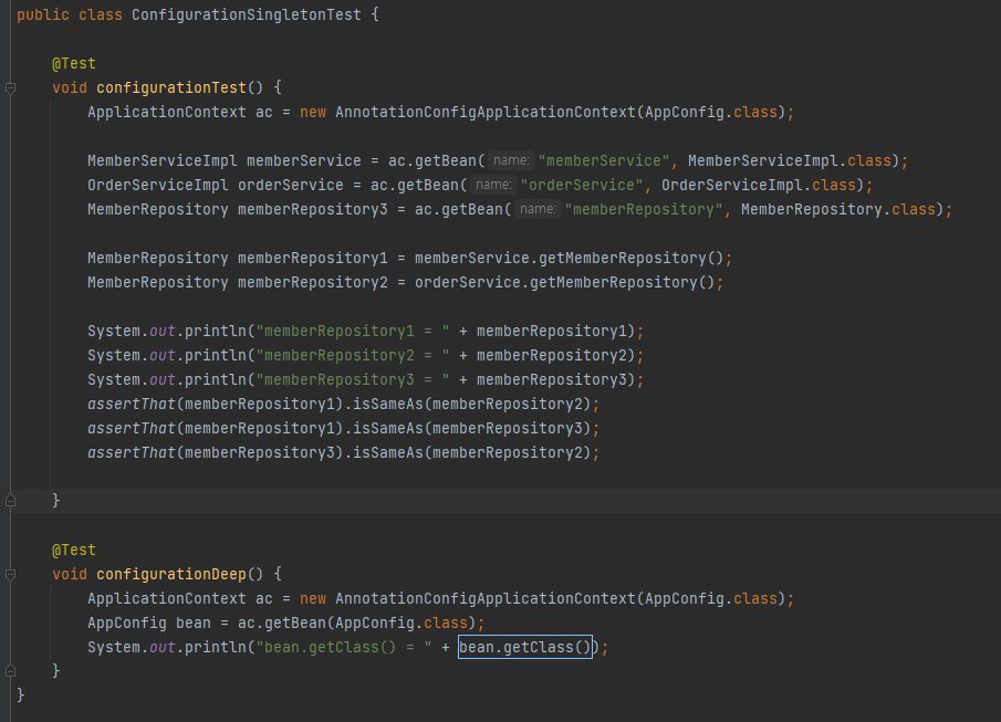 김영한 강사님의 스프링 핵심원리 - 기본편 configurationTest 결과에 대해 질문합니다!!