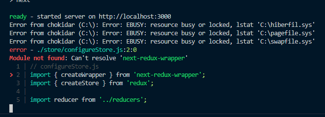 Error from chokidar (C:\): Error: EBUSY: resource busy or locked, lstat 'C:\hiberfil.sys'