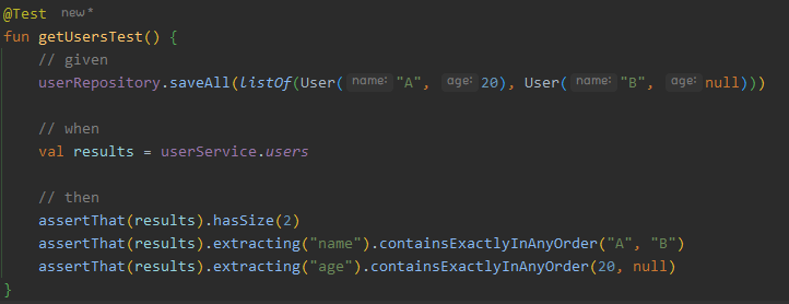 강의에서 getUsers()가 get으로 시작하다보니 코틀린에서 프로퍼티처럼 간주한다고 하셨는데, 실제로 인텔리제이의 자동완성에서는 getUsers()가 나타나지 않고 users만 나타나는 것을 볼 수 있었습니다.