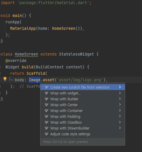 Show Context Action을 실행하신다음 코드와함께 크게 스크린샷을 찍어서 올려주시면 봐드릴게요!
