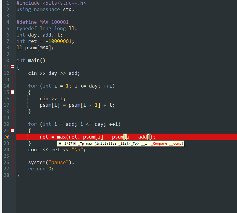 링크 여기있습니다. 제출은 되는데 Dev C++에서 하면 한글자 변수명도 계속 컴파일 에러 뜨고 너무 답답해서 다시 VS에서 작업하는데... c++표준에 맞춰서 컴파일하고 실행하는게 너무 어렵네요 ㅠㅠ 아직 초보라..