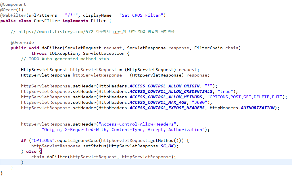 CORS를 해결하려고 이것 저것 다 해봤습니다. 그런데 해결이 안되네요. 어디가 문제인지 알려주세요.