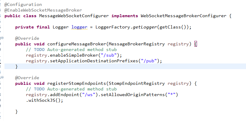 MessageWebScoketConfigurer의 endPoint 부분에서