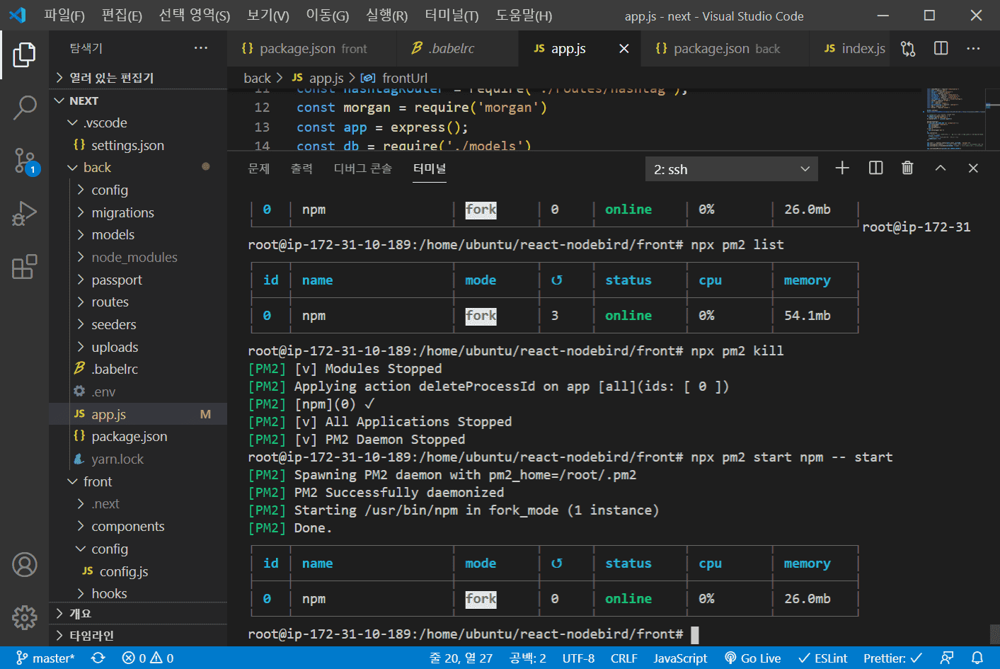 npx pm2 start npm -- start 후에 정상적으로 나온 것 같은데 프론트 서버 ip로 접속하면 연결할 수 없다고 나옵니다.