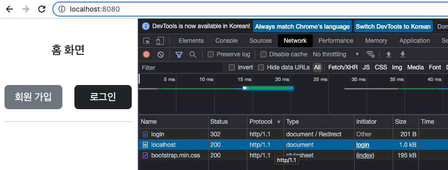 그런데 로그인이 완료된 후 loginHome이 아닌 home으로 리다이렉트 됩니다. home으로 리다이렉트된 후