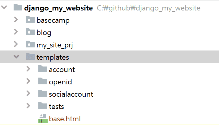 venv > Lib > site-packages > allauth > templates 밑에 있는 account, openid, socialaccount, tests의 4개 폴더와 base.html을 복사해 오세요.