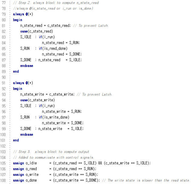 위 코드에서 read 용 FSM과, write 용 FSM을 구분하신 이유가 있을까요?