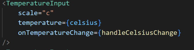 첫 번째 줄의 코드는 입력받은 온도의 단위가 화씨일 경우(scale === "f") 섭씨로 변환(tryConvert(temperature, toCelsius))하고,