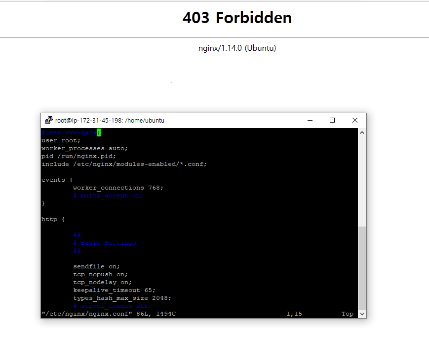 커뮤니티 해결방법에 user을 root로 바꾸라고 나와있어서 바꿨는데도 403 Forbidden 에러가 해결이 되지 않습니다 ㅠㅠ 권한 문제라는데 어떻게 해결해야하죠...