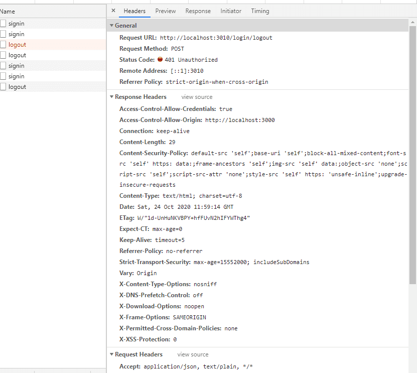 로그아웃하면 401에러가 생겨서 혼자서 해결해보려했으나 정 안되서 질문드립니다.