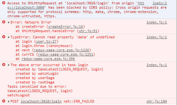 network나 redux 개발자도구에서도 보면 로그인이 필요합니다 문구가 뜨는데 문제를 어디서 찾아야할까요?