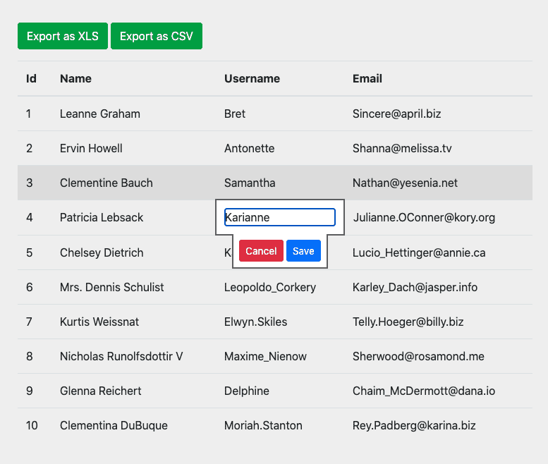 아래 예제는 react가 아닌 기본 javascript로 구현된 front 셀 단위 편집을 구현된 예제입니다.