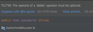 delete 오른쪽의 user.password는 optional이어야하는 것으로 ts4.0에서 강제되었습니다.