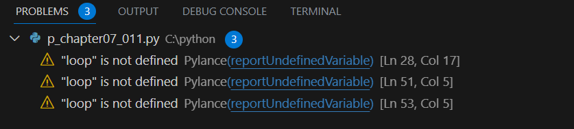 수업에서 사용한 코딩은 모두 복사하여 보내드렸는데, async def main(): 함수가 끊겨서 짤린 것처럼 보이나요? 그리고 제가 설명을 앞에서 잘 못한 것 같아서.. 아래 코딩을 다 한 후 ctrl + F5을 눌렀는데 VS Code의 터미널에서 결과값을 도출해내지 못했습니다. 그리고는 problems 에 저렇게 3개의 문제가 있다고 떠서요.