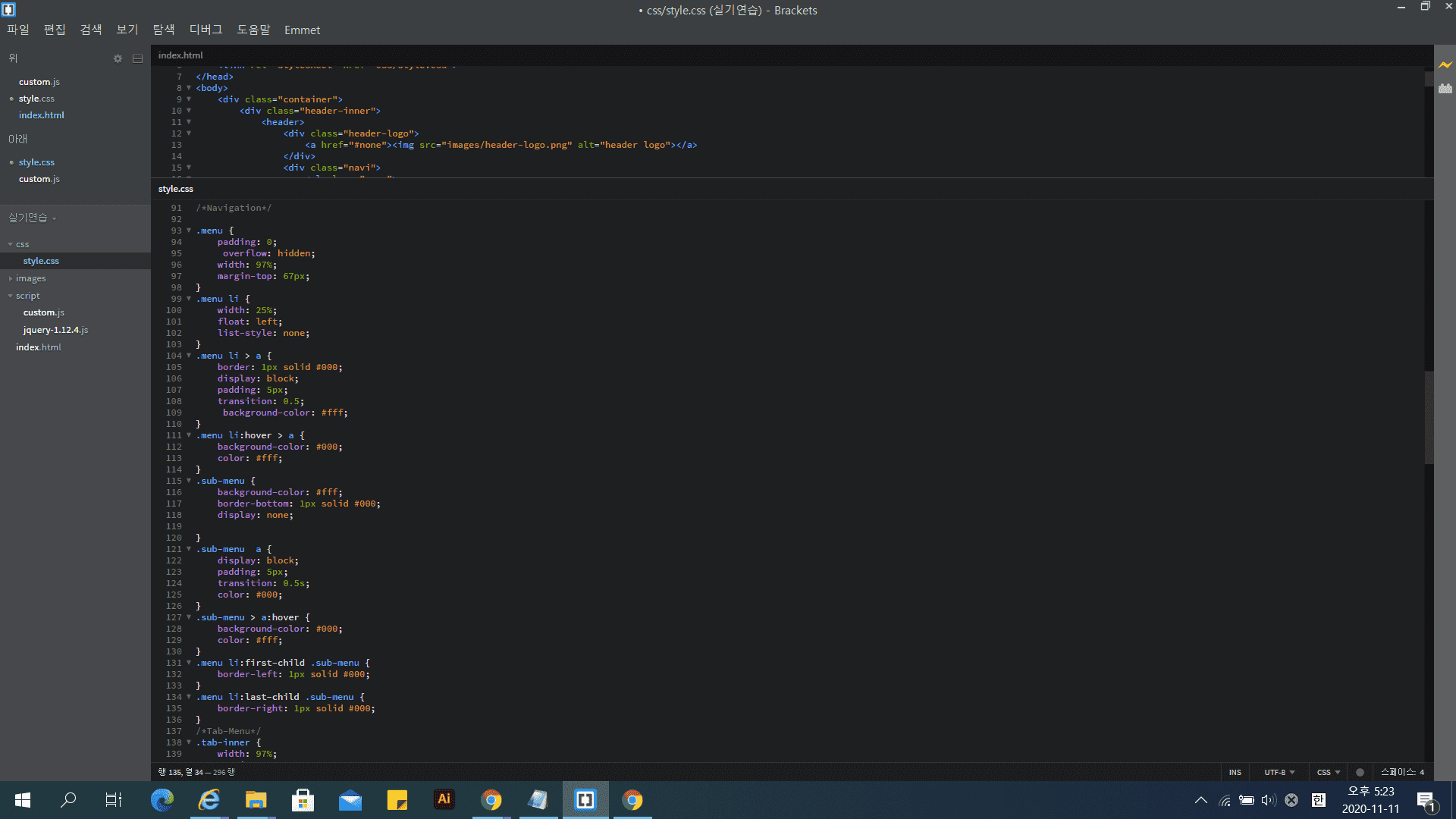 .sub-menu에 서브메뉴 4개를 맞출 정도의 높이값을 주세요.