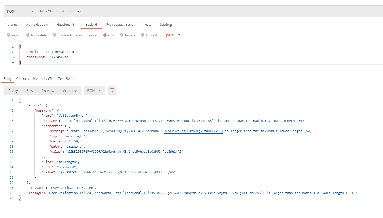 postman으로 login 정보를 보내면 자꾸 err가 뜹니다.