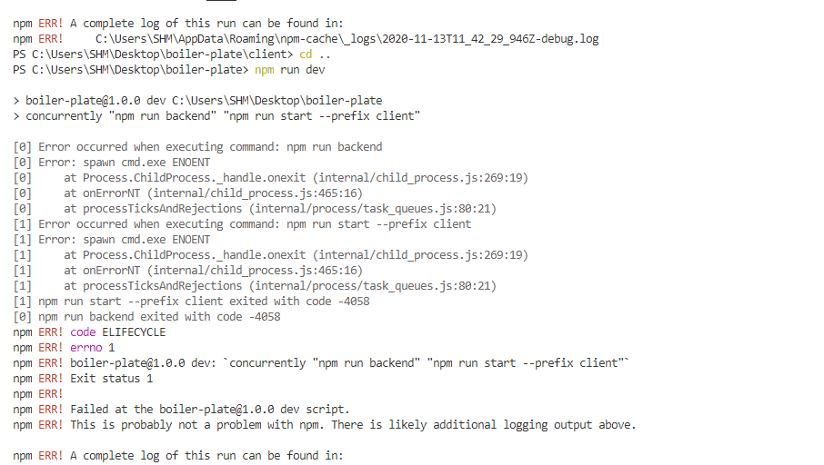 npm run backend와 client에서 npm run start를 각각 입력하면 잘 돌아가는데 concurrently 로 동시에 돌리면 errer가 발생합니다ㅜㅜ