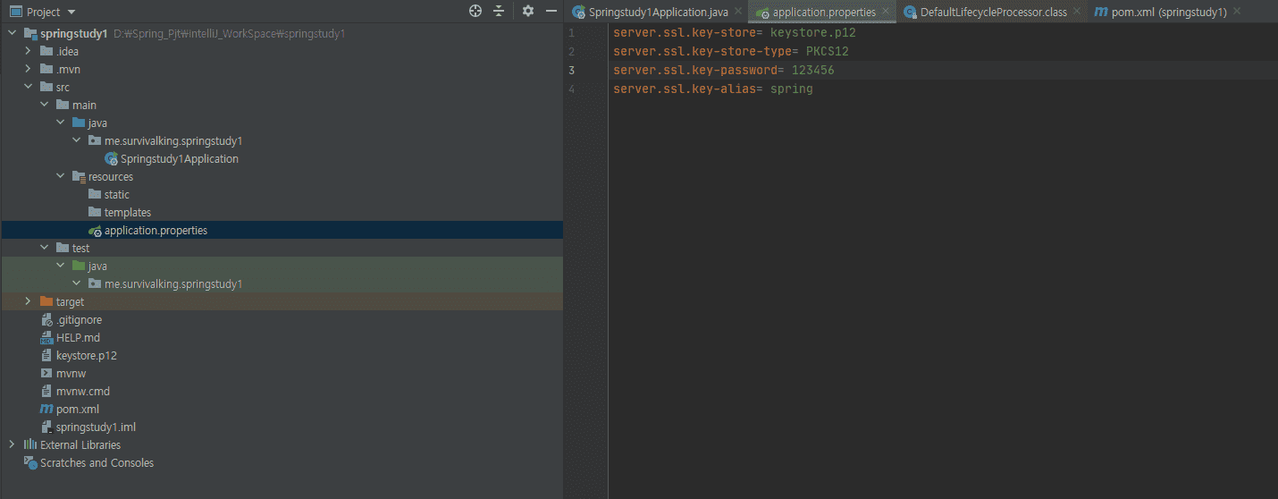 위 사진과 같이 properties를 설정하여 https를 적용 시키려고하는데