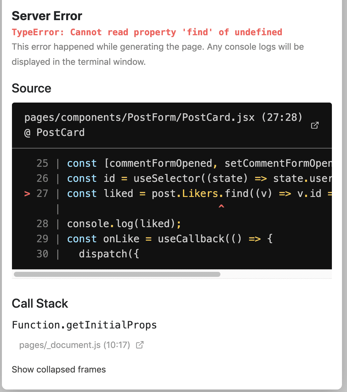 서버에서 post 데이터를 프론트로 보낼 때 findAll하면서 include User as Likers 했는지 확인해보세요.