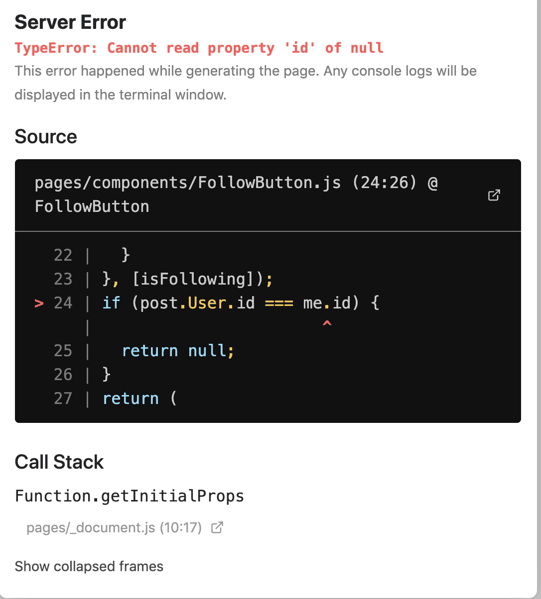 me가 undefined인 것입니다. me?.id로 바꿔보세요.