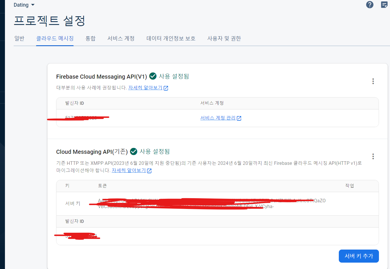 구글에서 보내는 알람 (매칭이 되었습니다.)의 경우는 잘 가는데 서로 간의 push는 강의 내용과 동일한 코드로 작성하고 cache제거, 안드로이드 스튜디오 firebase 설정 까지 다시 하고 log에도 별다른 오류 코드가 뜨지 않습니다... ( 유저삭제, 회원가입새로 , 앱삭제 후 재등록 했습니다..)
