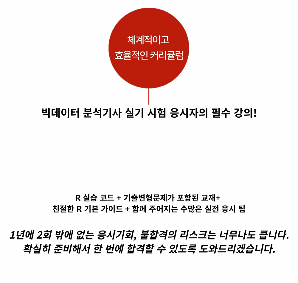 필수 자격증이지만 독학하기엔 결코 쉽지 않은 빅데이터분석기사를 배우기 쉬운 데이터분석 도구 R을 활용하여 단기간에 완전 정복하세요!!