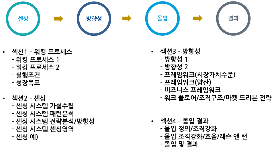 이 강의를 통해 새로운 사업을 기획하거나 접근할 때 효율적인 방법으로 체계적인 접근이 가능해요. 실전 경험을 통해 사업 개발 시 센싱/방향성/몰입 및 개선/결과의 구조 및 성공을 위한 주요 내용을 담았습니다.