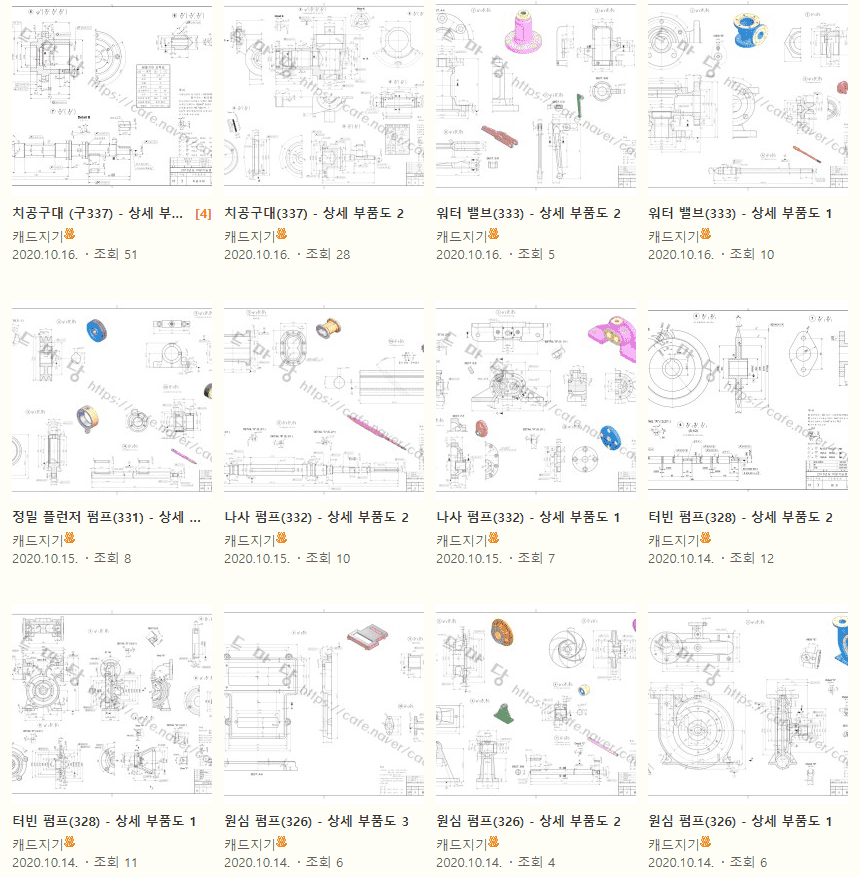 위 도면들은 모두 제가 작업했던 것이며, 현재 “캐드마당” 카페매니저로 "캐드지기"라는 닉네임을 달고 활동중에 있습니다.