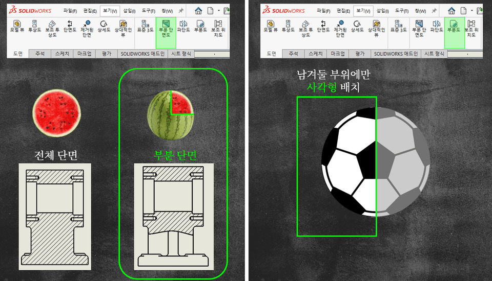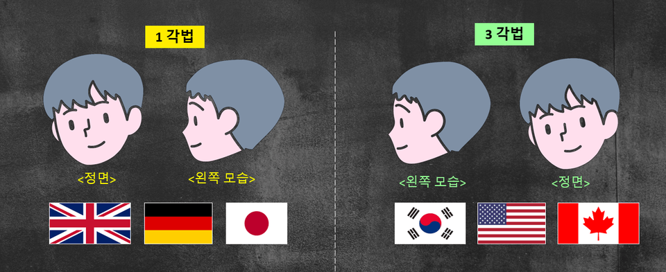 예를 들어, 1각법 및 3각법의 차이를 이해하기 쉽게 설명하고,
