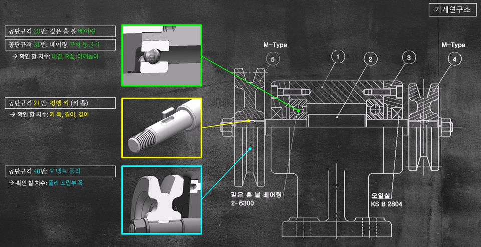 시험에 출제되는 대부분의 문제도면은 KS규격, IT공차, 기하공차 이론, 공차 해석, 정투상 원리 등 기초가 철저히 잡혀 있어야만 답안도면을 작성 할 수 있습니다.