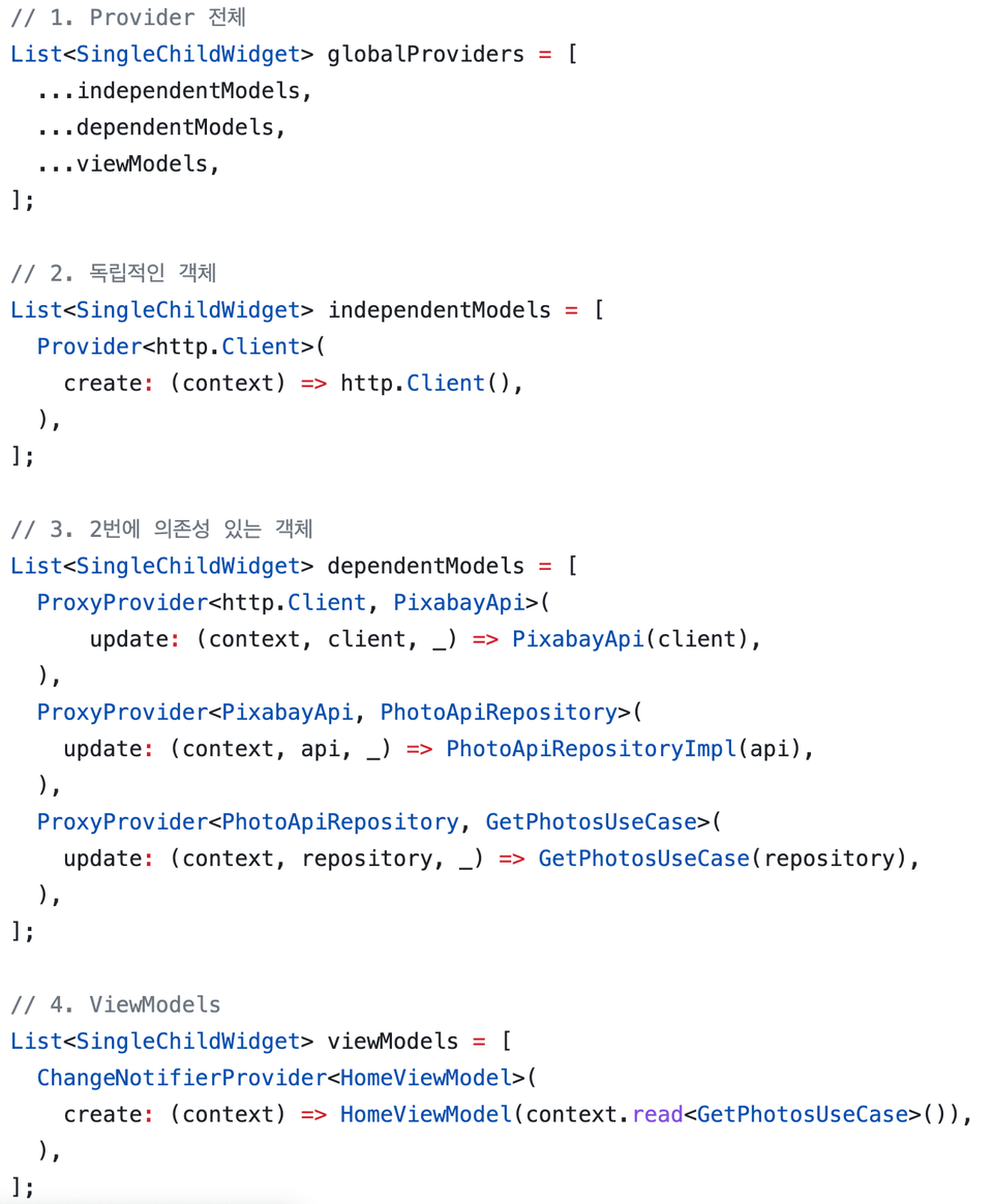 플러터에는 DI(의존성 주입)를 도와주는 많은 라이브러리가 있습니다.