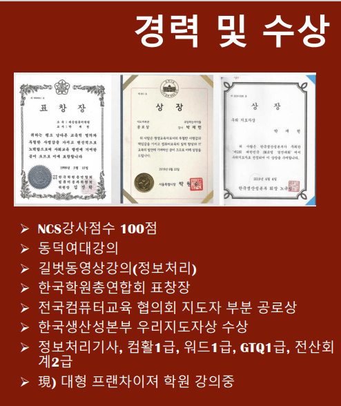 한국학원총연합회 표창장 수상국제 컴퓨터학원 강사