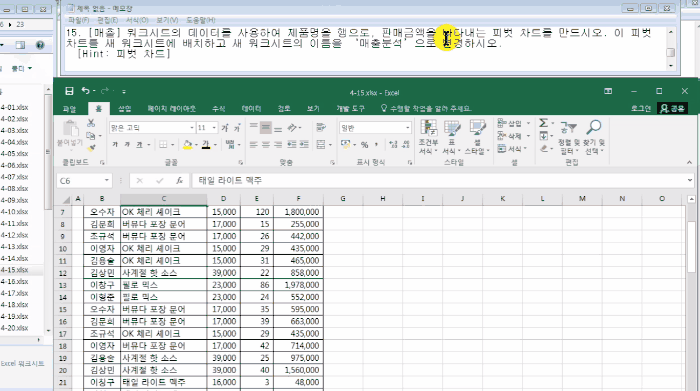 모스 엑셀 2016 expert 자격증을 취득하고자 하는 학생
