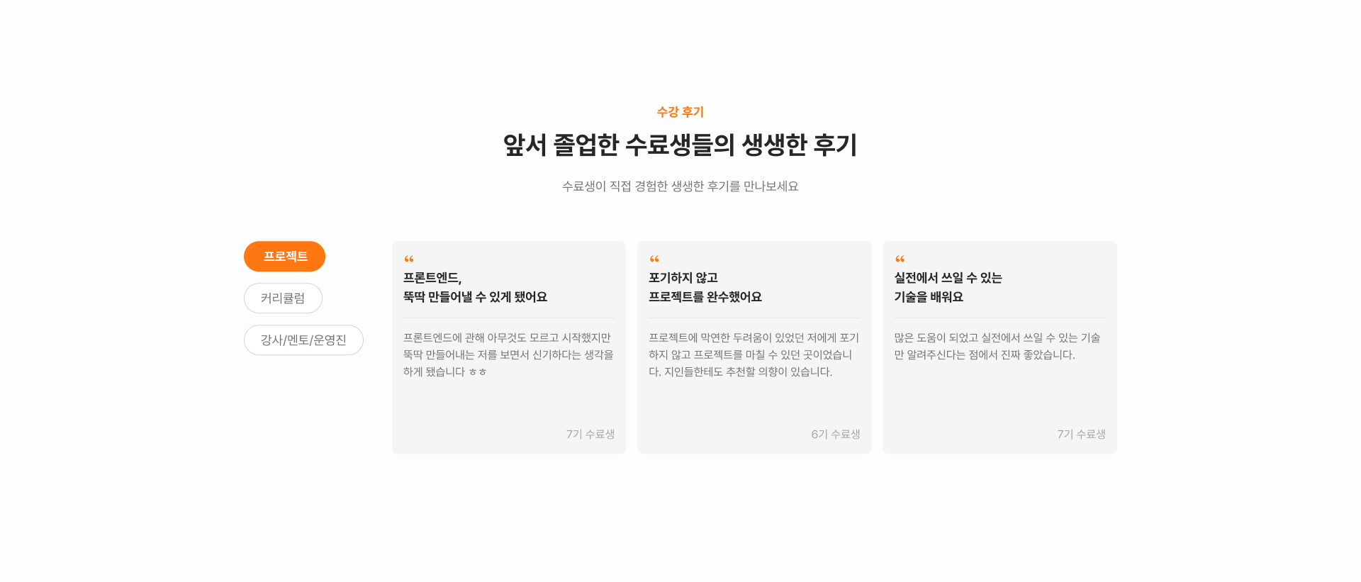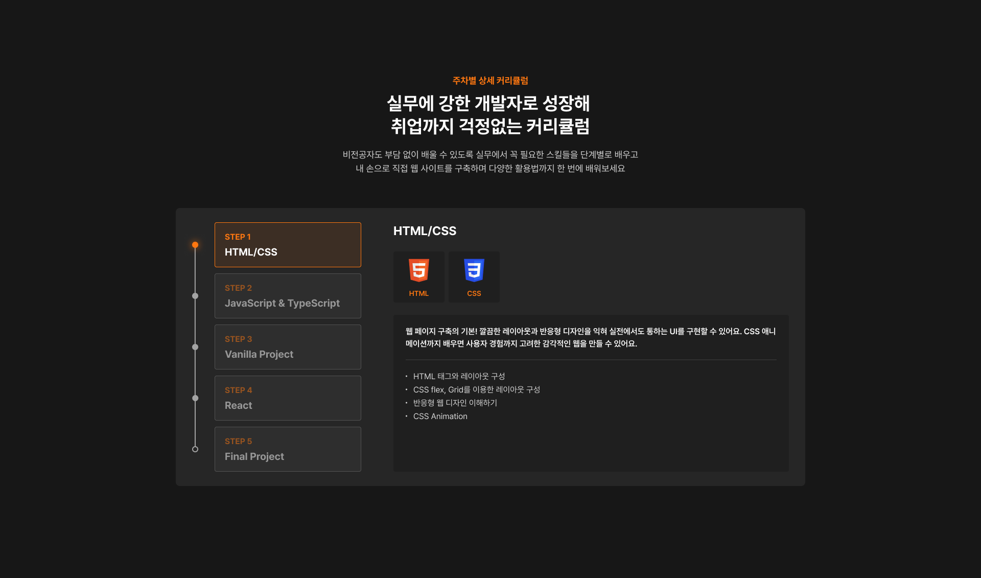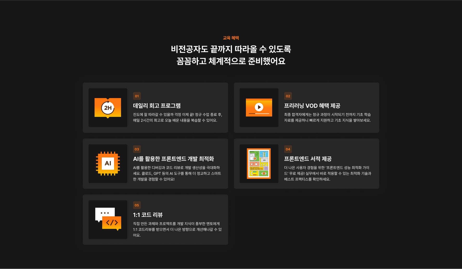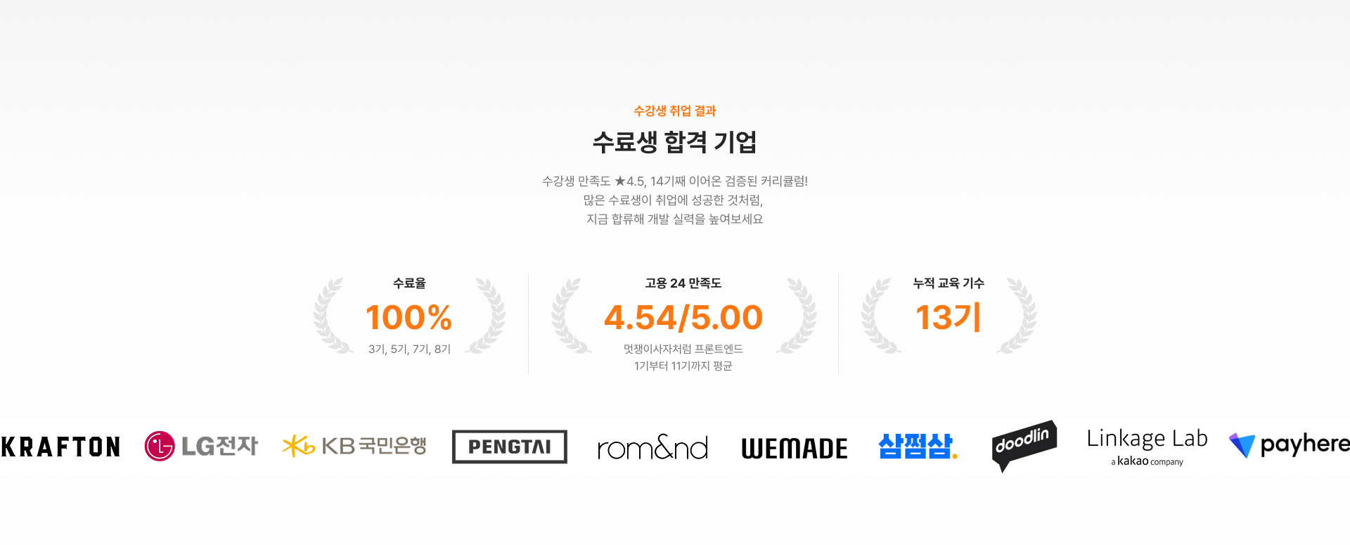 실무 기반 커리큘럼부터 단독 인턴십까지 단번에 끝내는 프론트엔드 개발자 준비!