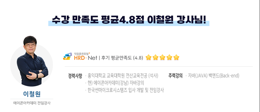 11월 15일 개강하는 자바(Java)중심 풀스택 캠프는 이철원 강사님이 진행해요!
