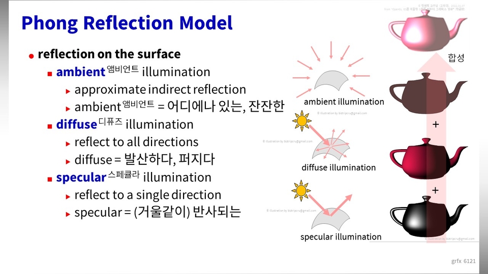 이 강의는 - 파트 (6) 쉐이딩 기초, 퐁 리플렉션 모델, 블린-퐁 쉐이딩